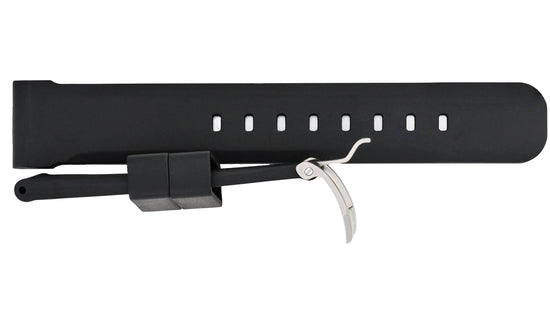 The rubber strap is fitted with hard coated sandblasted 20mm pin buckle. The pieces length are 133mm/75mm excluding buckle. Thickness for 5,5mm (lug end) to 3,7mm. Lug width 22mm, buckle width 20mm.